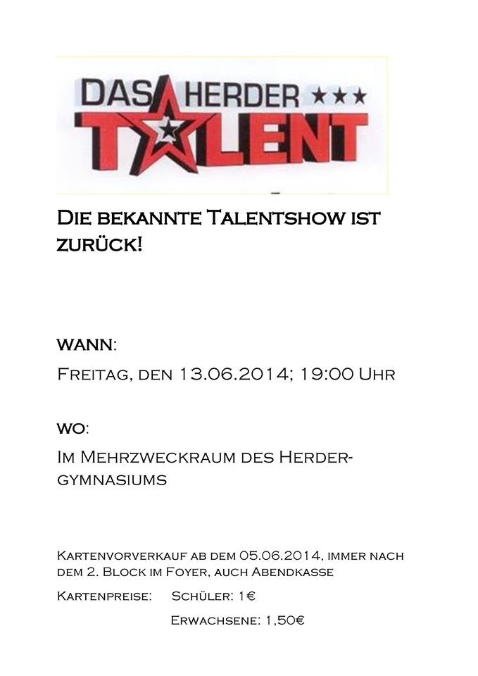 weiterlesen...Kartenvorverkauf Herdertalent 2017