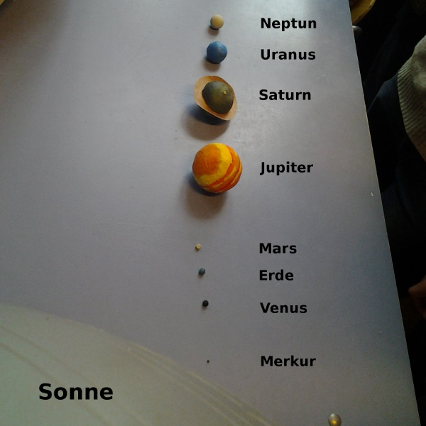 Wir machen unser Sonnensystem begreifbar! Science-Fiction-Filme lassen uns glauben, dass das Weltall um uns herum voll von fliegenden Objekten ist, die nur darauf warten, auf die Erde zu stürzen oder dass es nur ein Katzensprung bis zum Mars oder Jupiter sei. Um konkretere Vorstellungen von den Größenverhältnissen im Sonnensystem zu erhalten, hat der Astronomie Wahlkurs der 8. Klassen das Sonnensystem maßstabsgerecht nachgebaut.