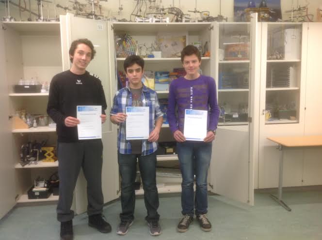 Matthias Grützner, Julian Egbert und Arne Geipel (alle Q1) errangen mit ihrem Forschungsprojekt beim European Union Contest for Young Scientists in Tallinn (Estland) einen der drei mit jeweils 3.500 Euro dotierten dritten Preise. Zusätzlich erhielten sie als Sonderpreis eine Einladung zu einem einwöchigen Aufenthalt am Joint European Torus (JET) in Culham, Großbritannien.