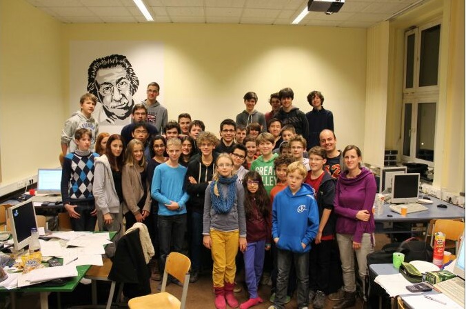 Unser Team hat heute das Finale des europäischen Programmierwettbewerb der ESA in Nordwijk (Niederlande) gewonnen. Das Bild zeigt unser Siegerteam Steffen Feldhus (12. Klasse), Tim Gabriel (10p), Leonard Hackel (10d), Paul Hagemann (10d), Jochen Jacobs (10d), Heiko Radde (12. Klasse), Niklas Schelten (10d) und Felix Thoma (12.Klasse) beim Wettbewerb in einem Container,der dem Inneren der ISS gleicht, mit den SPHERES-Satelliten. Wir gratulieren ganz herzlich!