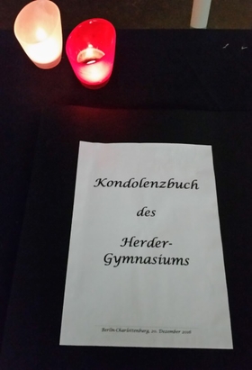 Rund 150 Schülerinnen und Schüler sowie Lehrer/innen unserer Schule nahmen am Montag, den 28.01.2013 an der Gedenkveranstaltung "Tag der Befreiung des ehemaligen Vernichtungslagers Auschwitz" auf dem Theodor-Heuss-Platz teil. Neben Bettina Wegener und Karsten Troyke wurde diese Gedenkveranstaltung von Schülerinnen und Schülern in Zusammenarbeit mit dem engagierten Vorbereitungs-Team gestaltet. Für das Herder-Gymnasium trug Felix Krüger seine "Gedanken zu Ravensbrück" vor.