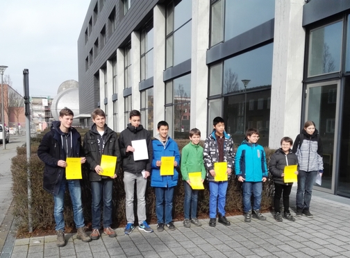 Steffen Feldhus (12. Klasse), Tim Gabriel (10p), Leonard Hackel (10d), Paul Hagemann (10d), Jochen Jacobs (10d), Heiko Radde (12. Klasse), Niklas Schelten (10d) und Felix Thoma (12. Klasse)! Mehr zum Wettbewerb?